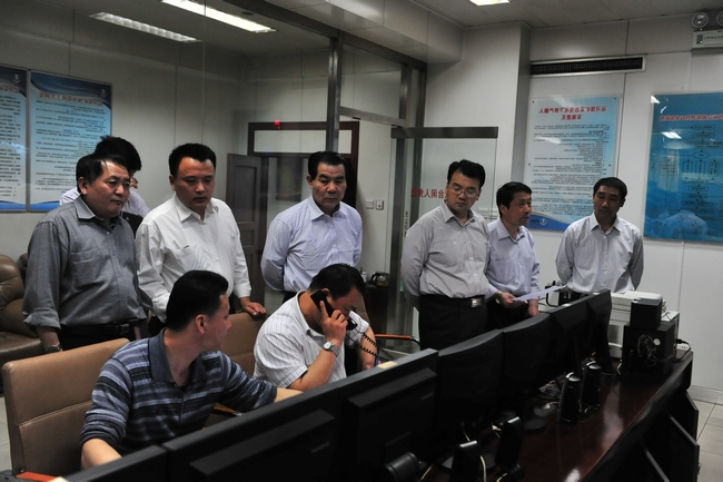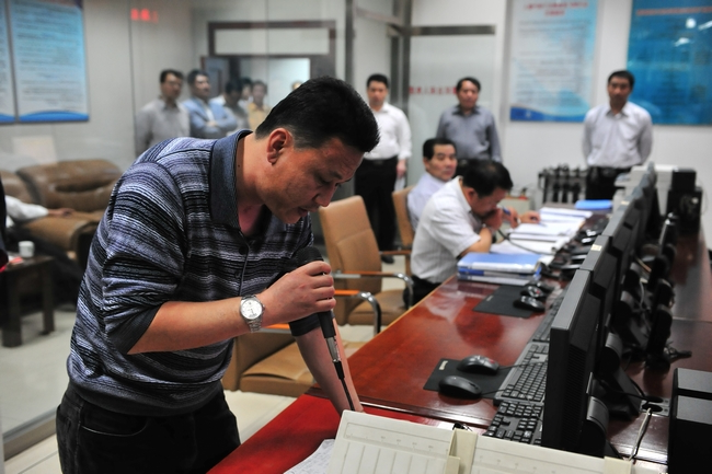 (连接到矿井突水的电话,汇报情况值守领导班子后,通知短信各机台地方) 重启应急处置防控警报 调度员指揮中心的 大会总结出大会.