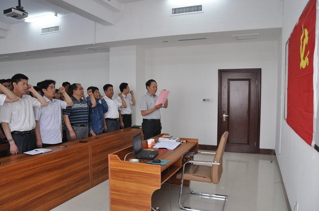 在支持人人的带领下,朗朗诵念入党宣誓词,重温神圣的时刻,向党和人民作出庄严承诺。随后,全体党员进行了新党章知识闭卷考试。