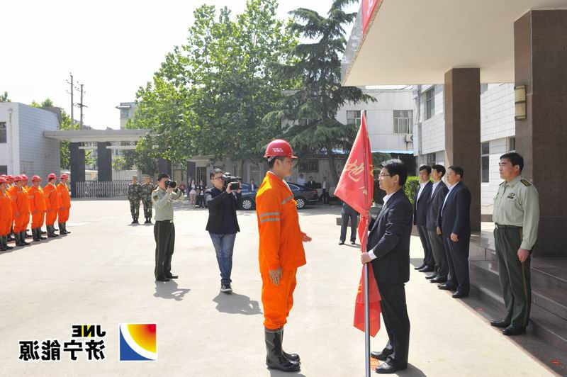 5月12日,运河煤矿地震应急救援队与市武警支队成立的济宁市地震应急救援队一起获张继民副市长授旗。集团公司董事长虢洪增、运河煤矿矿长马金平出席了授旗仪式。