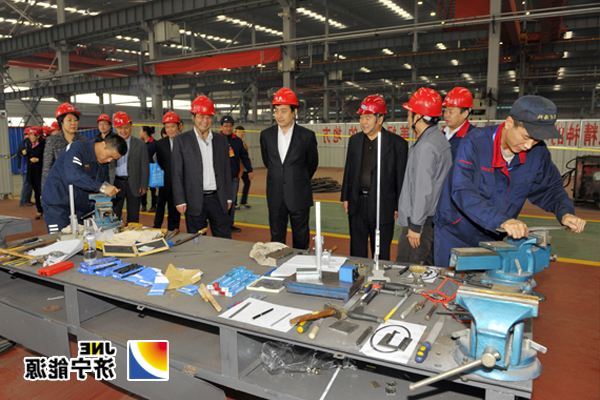 集团公司董事长虢洪增、工会副主席张洁茹陪同市职工技术协会主任张存瑞、市总工会生产保护部部长赵庆国在比赛现场视察