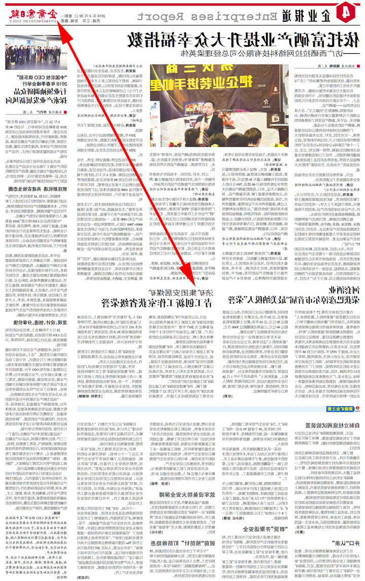 《企业家日报》2018年4月30日 4版单位宣传报道: